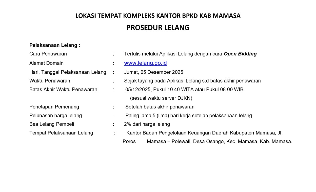 LELANG ASET PEMERINTAH KABUPATEN MAMASA TAHUN 2025